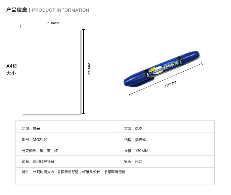 晨光文具 记号笔 光盘笔大头笔物流油性粗笔 办公用品 MG2110 黑色 自营