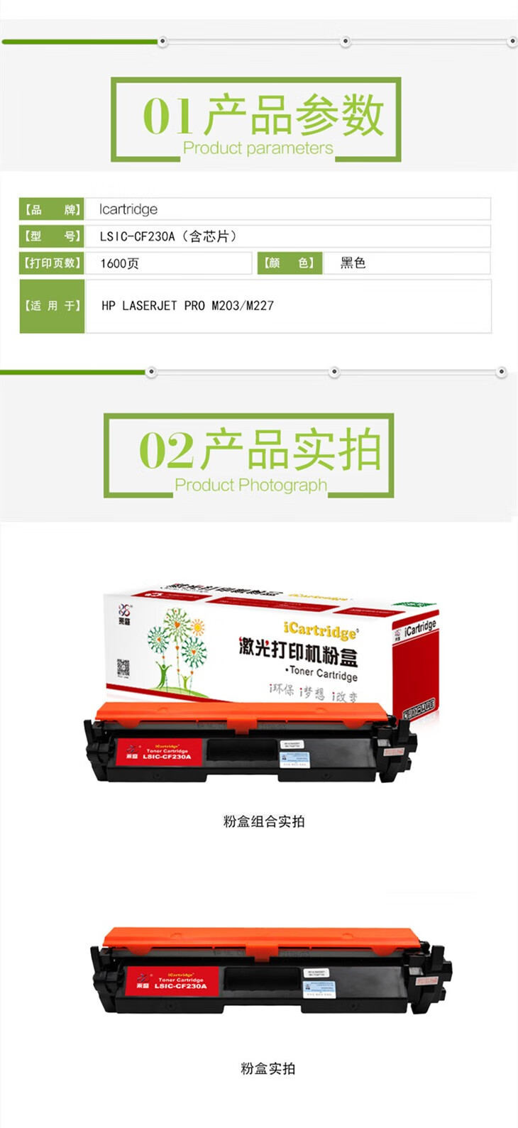 莱盛LSIC-CF230A黑色粉盒适用于HPLaserJet Pro M203/M227带芯片 自营