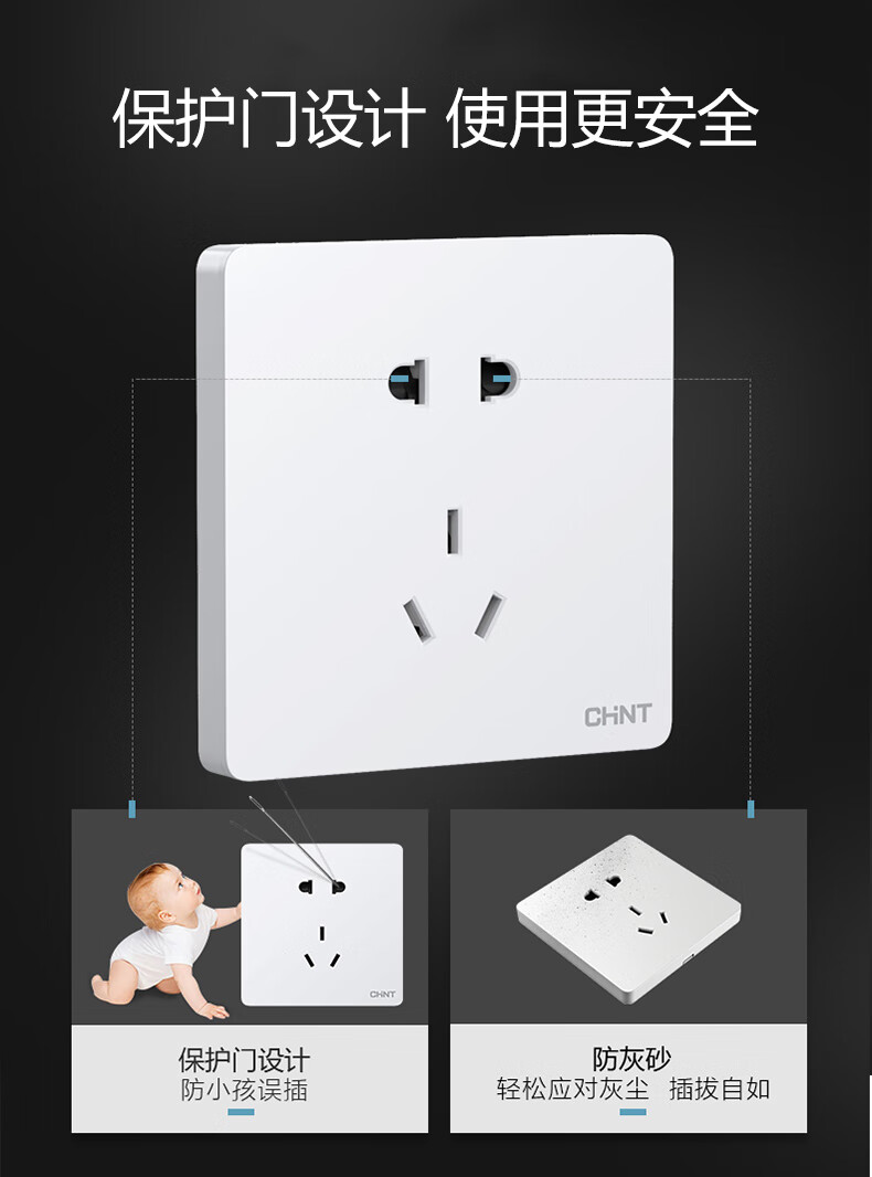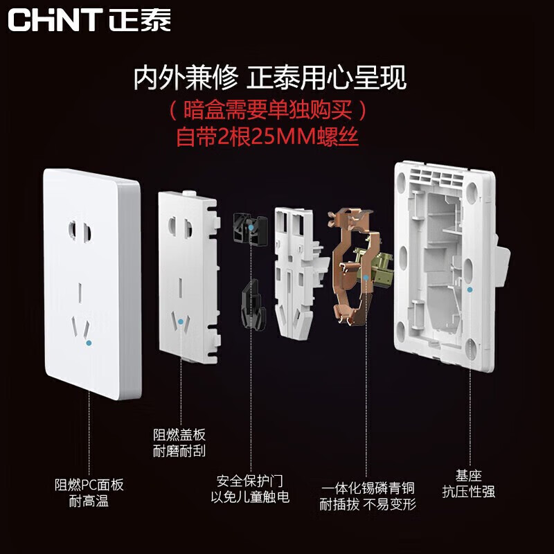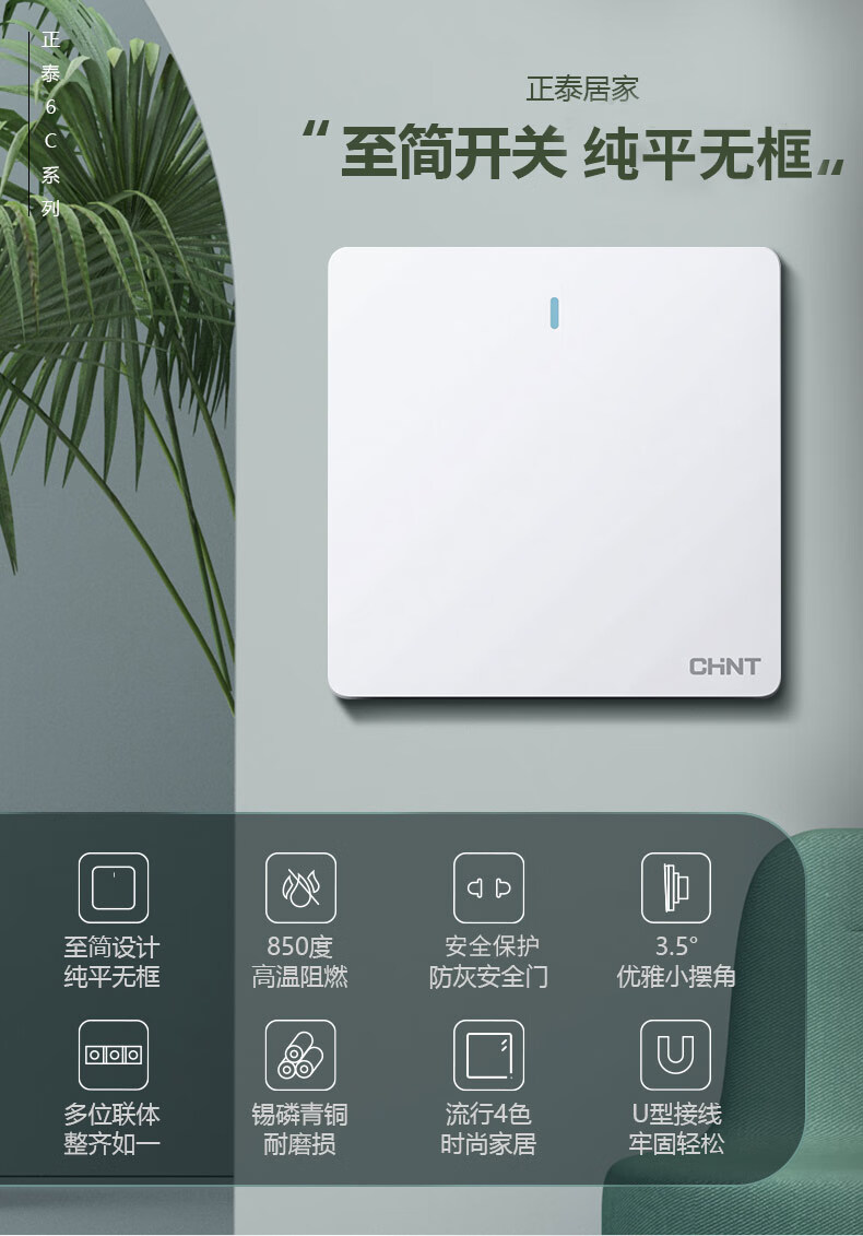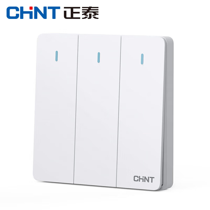 正泰(CHNT)开关插座墙壁面板家用86型面板三联单控开关NEW6C白色 自营