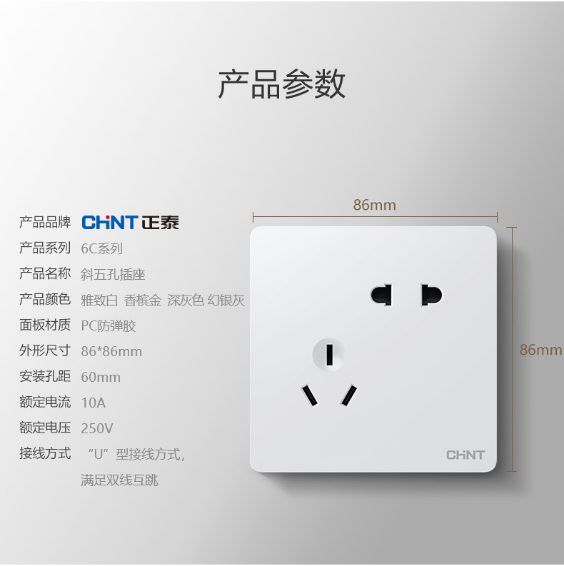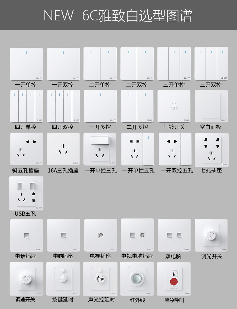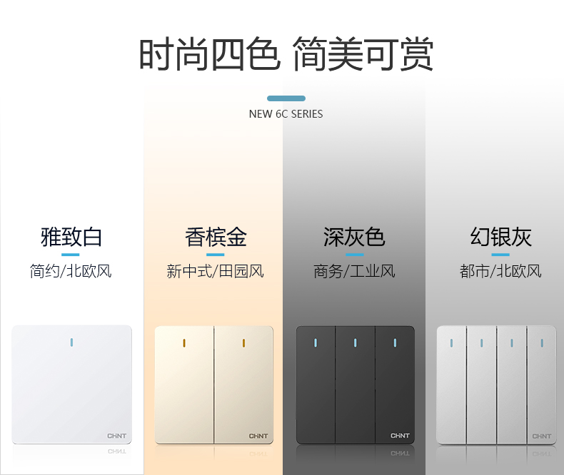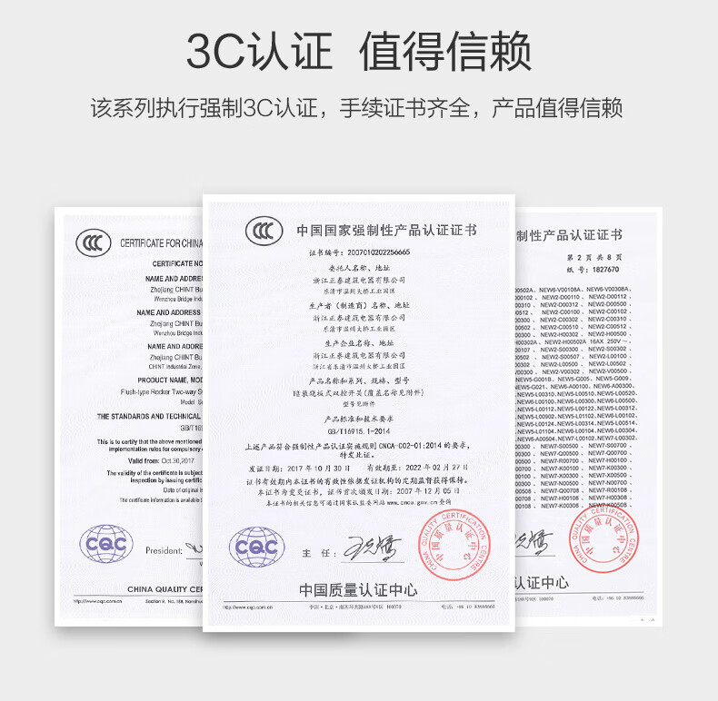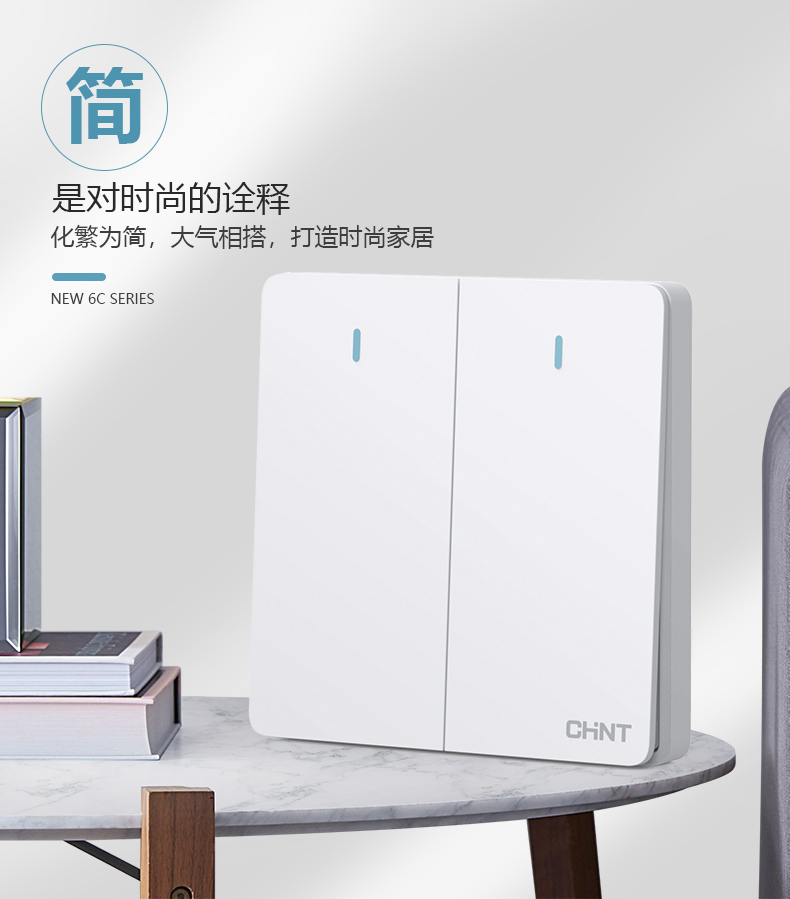 正泰(CHNT)开关插座墙壁面板家用86型面板三联单控开关NEW6C白色 自营