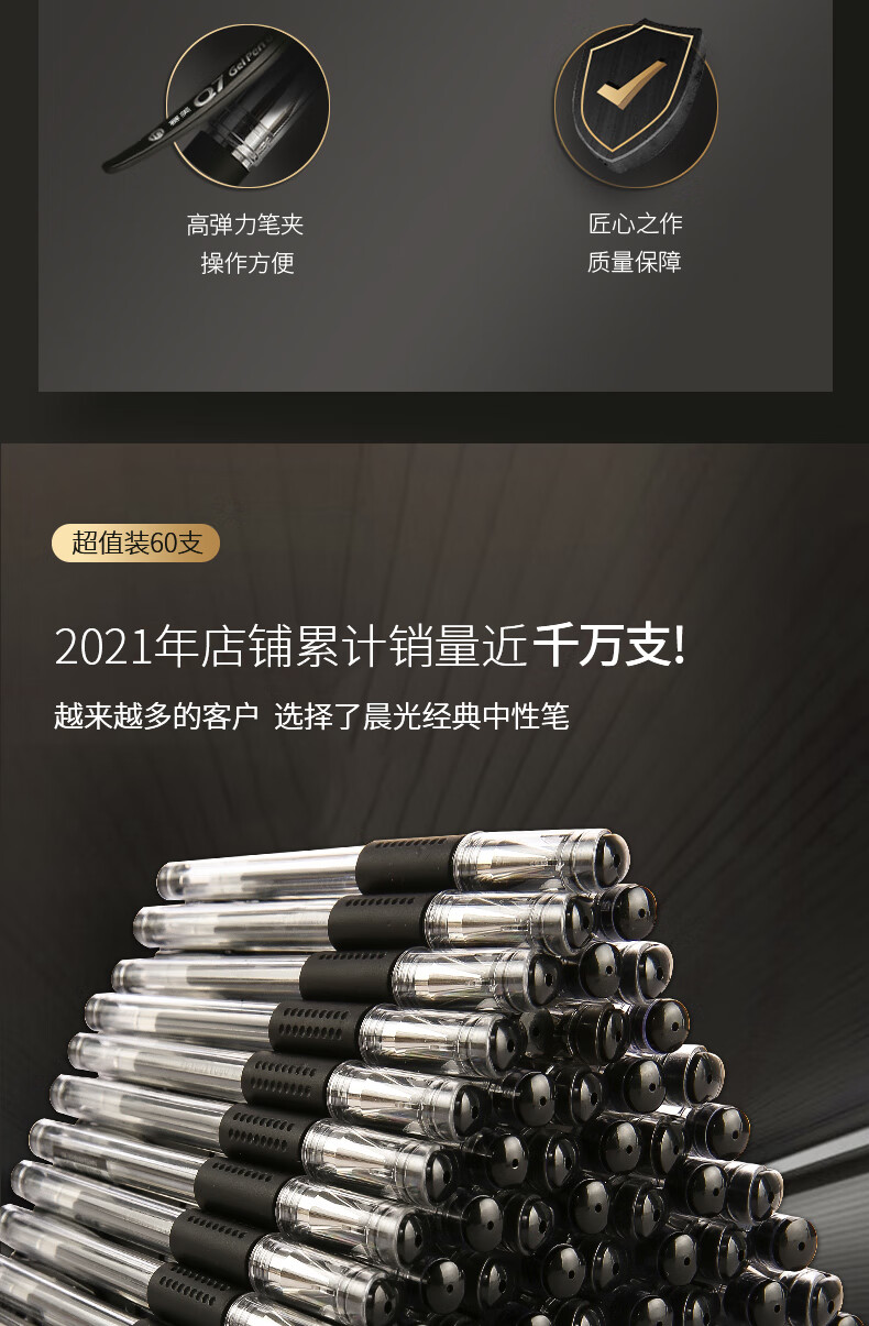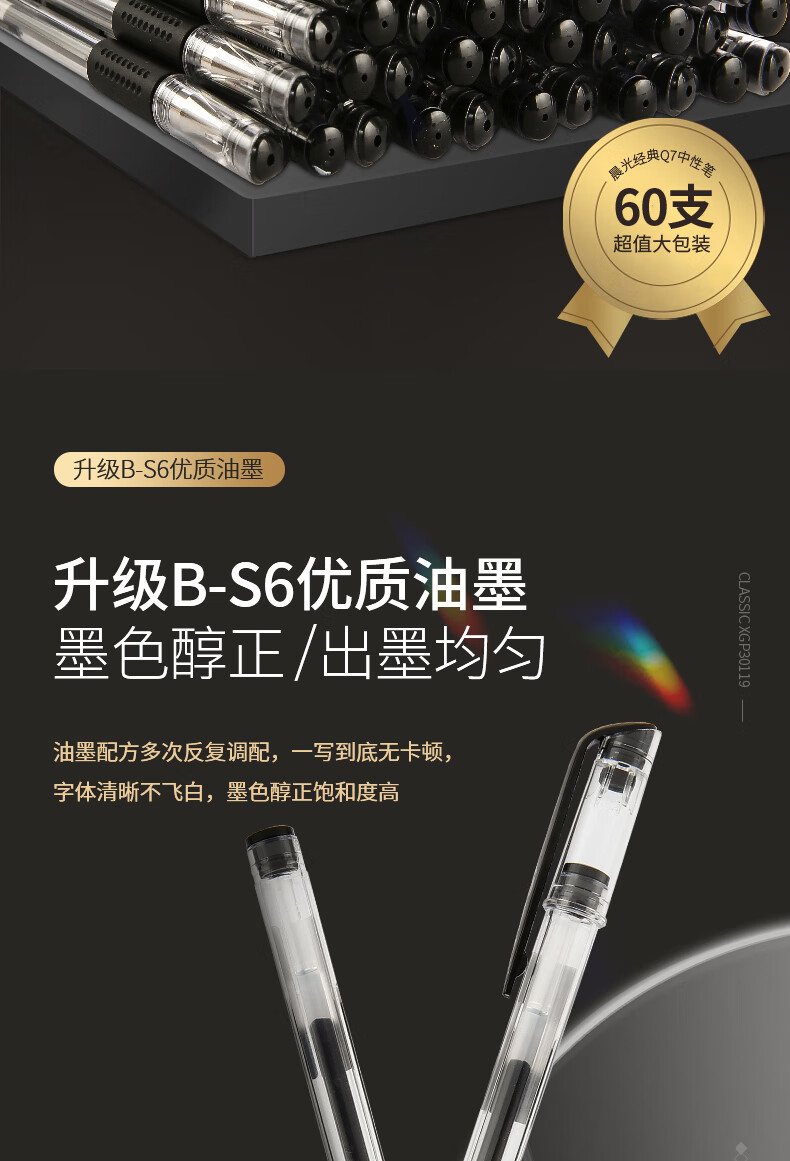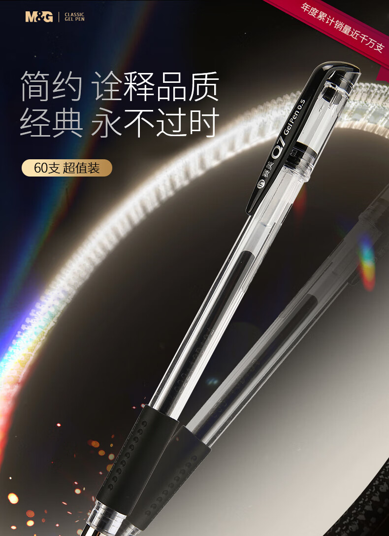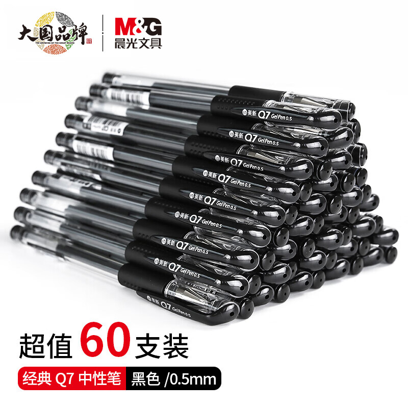 晨光(M&G)文具60支0.5mm中性笔签字笔黑色水笔Q7 办公用品XGP30119 自营