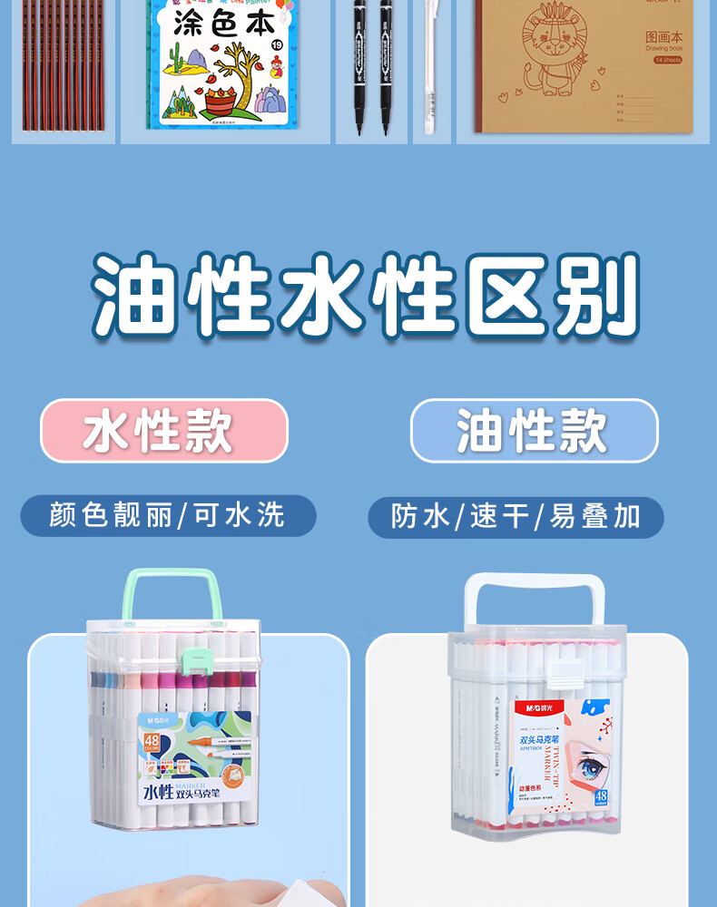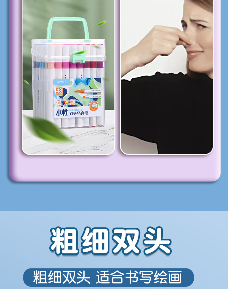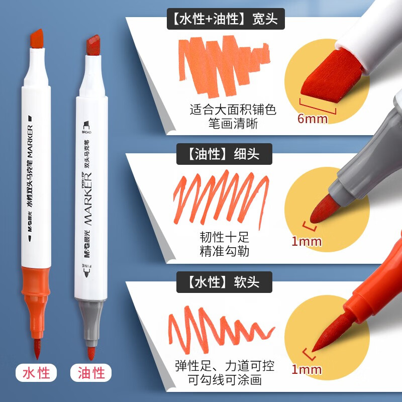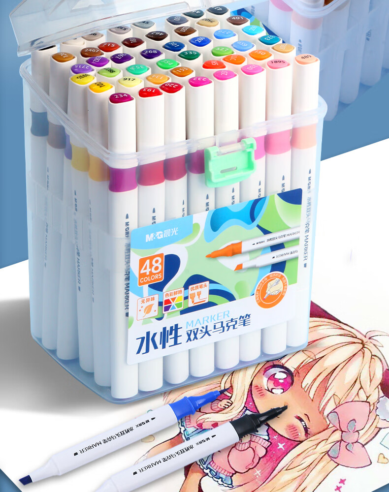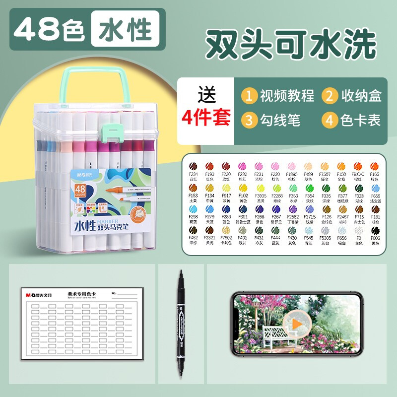 晨光(M&G) 双头水性马克笔小学生儿童幼儿园无毒可水洗绘画软头水彩笔美术生专用手绘学生 【水性】48色-双头可水洗 含4件套 自营