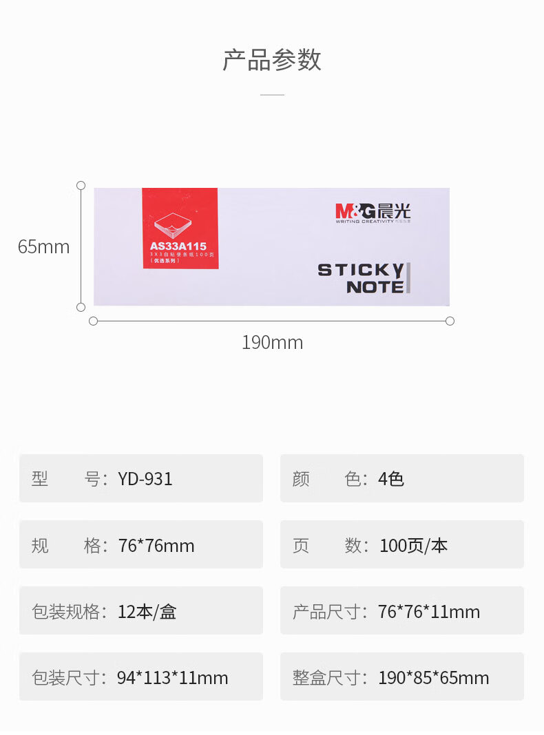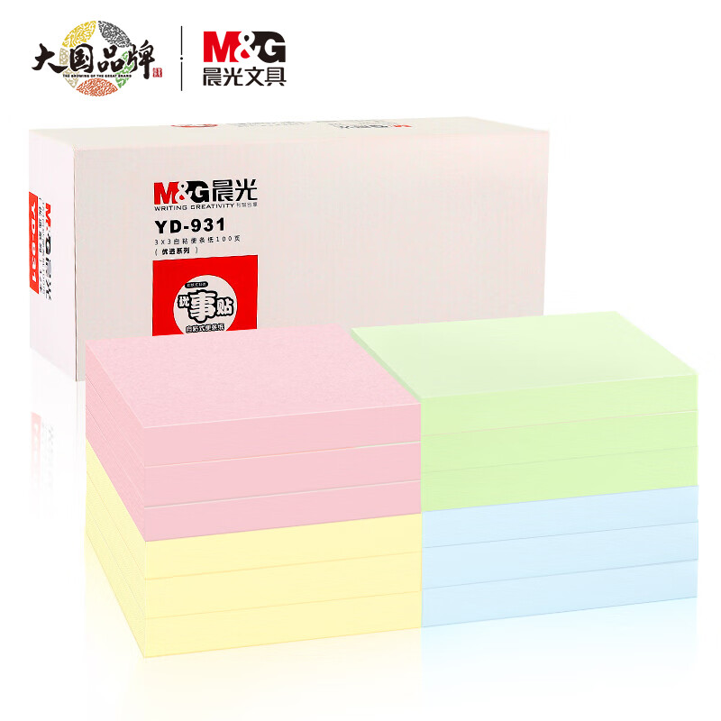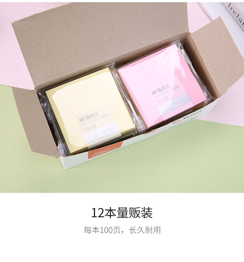 晨光(M&G)文具1200张4色便利贴 76*76mm开学优事贴便签贴 量贩装便签纸 N次贴留言贴 办公用品 12本/盒YD-931 自营
