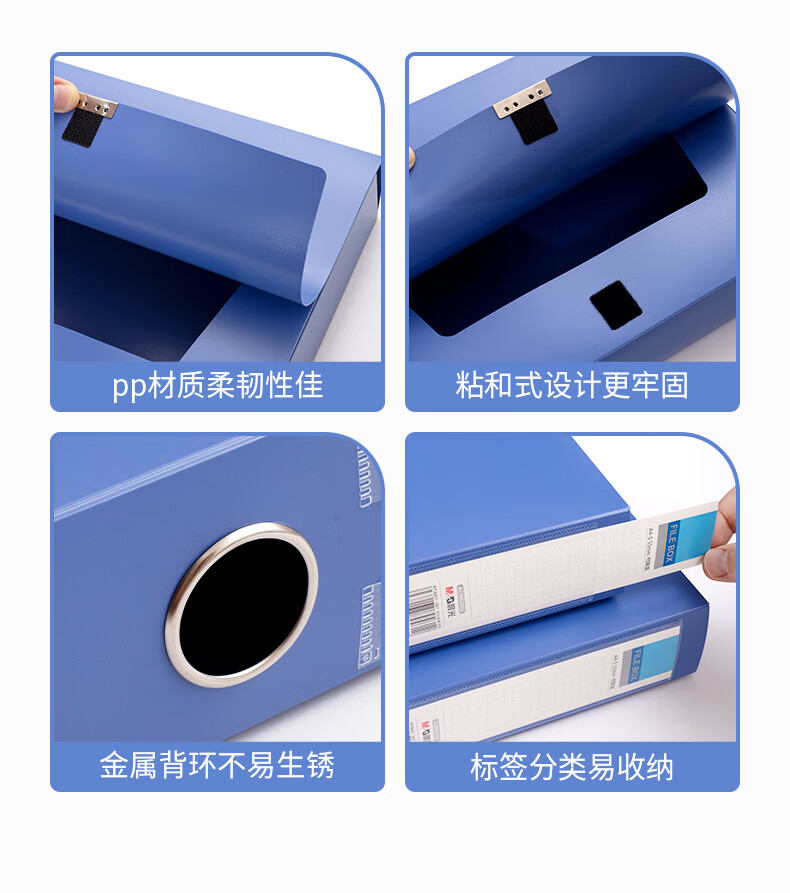 晨光(M&G)文具A4/35mm蓝色粘扣档案盒 办公加厚文件盒 睿智系列党建资料盒/财务凭证收纳盒 10个装ADMN4021 自营
