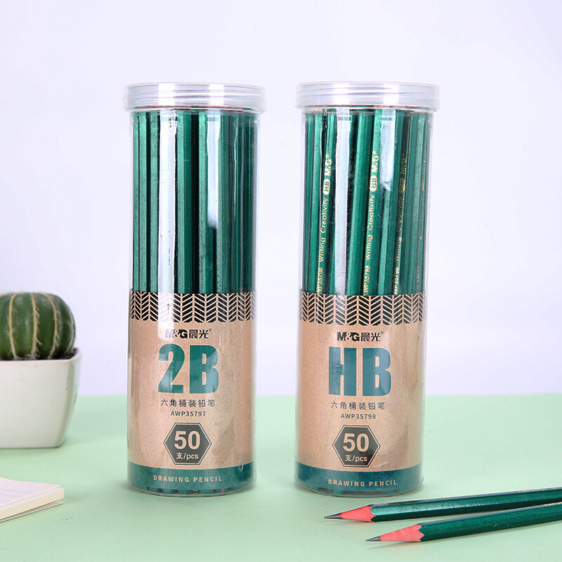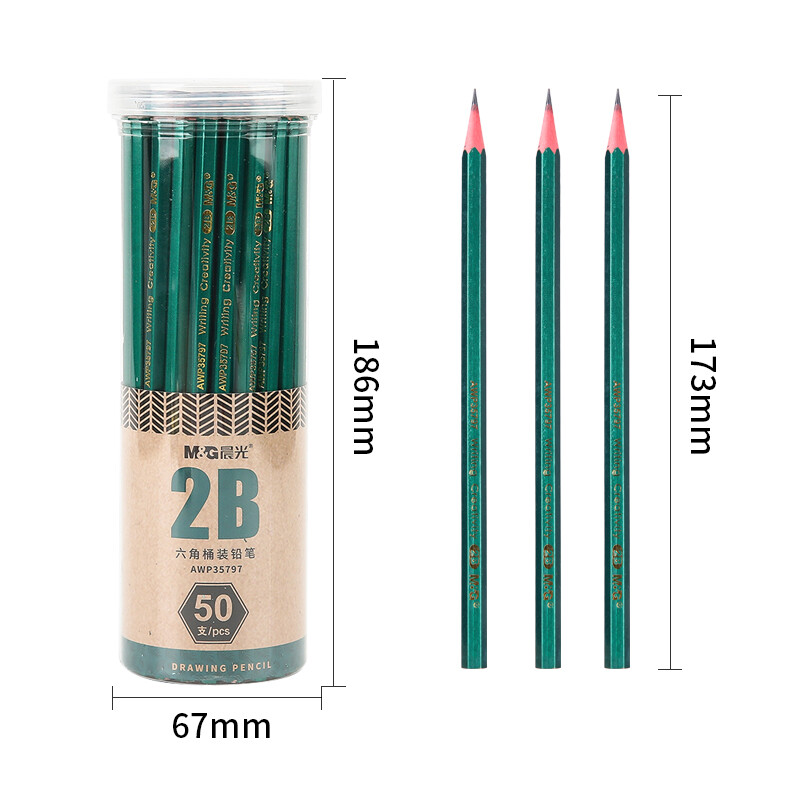 晨光(M&G)文具2B六角木杆铅笔 经典绿杆铅笔 学生考试素描绘图笔 50支/桶AWP35797 自营