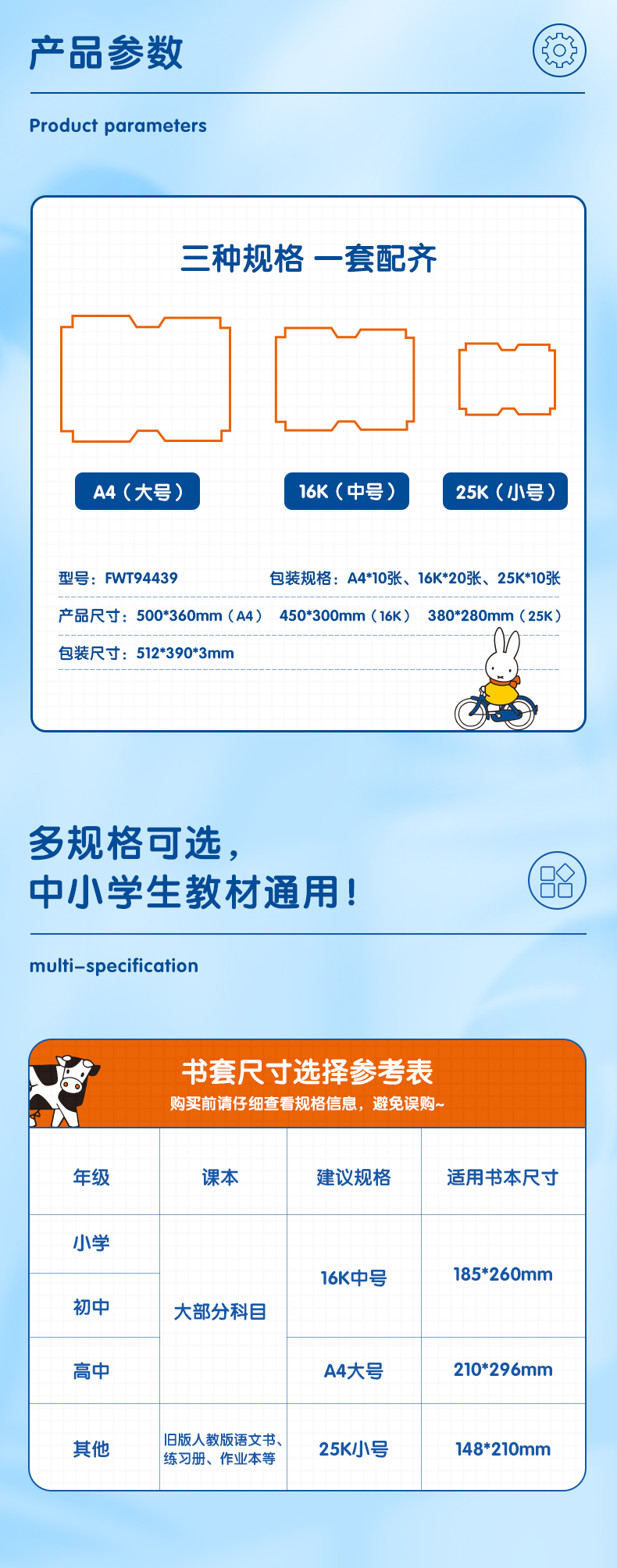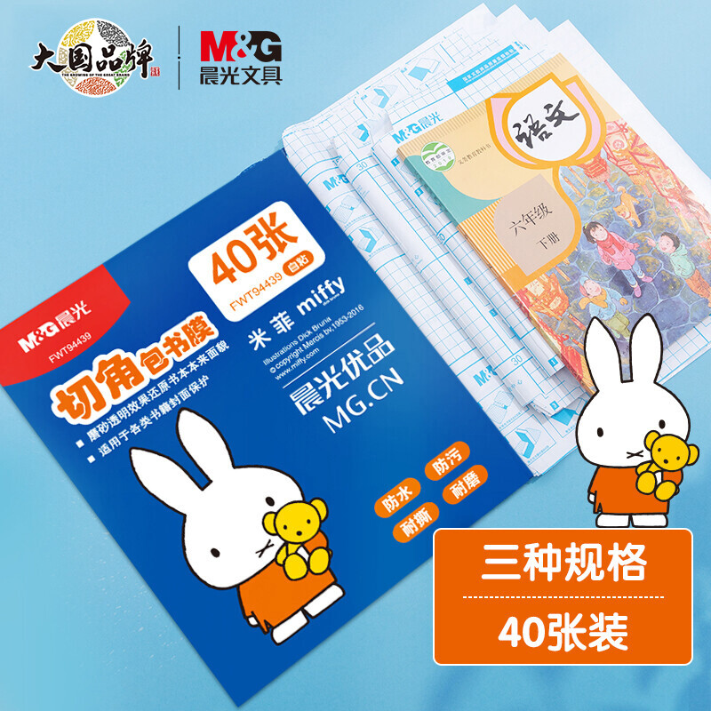 晨光(M&G)文具40张多规格透明磨砂切角包书皮 自粘包书膜 学生书套开学套装 带姓名贴 (A4/16K/25K) FWT94439 自营