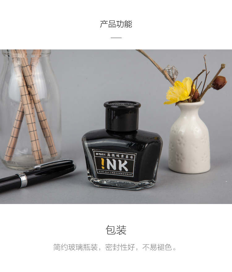 晨光(M&G)文具黑色60ml高级碳素墨水 大容量不堵钢笔墨水 开学文具 单瓶装AICW9001 自营
