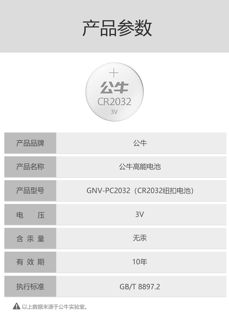 公牛(BULL) CR2032纽扣电池1粒装 自营