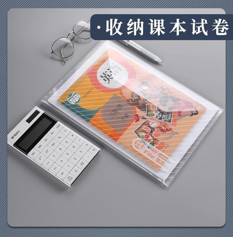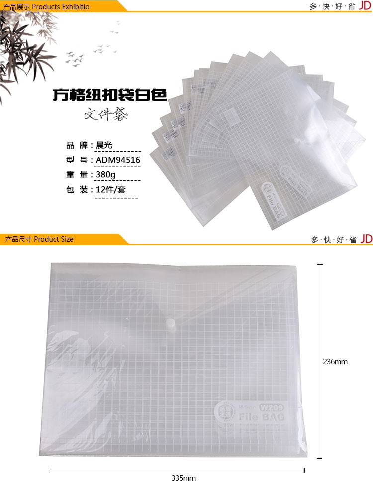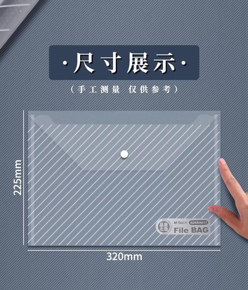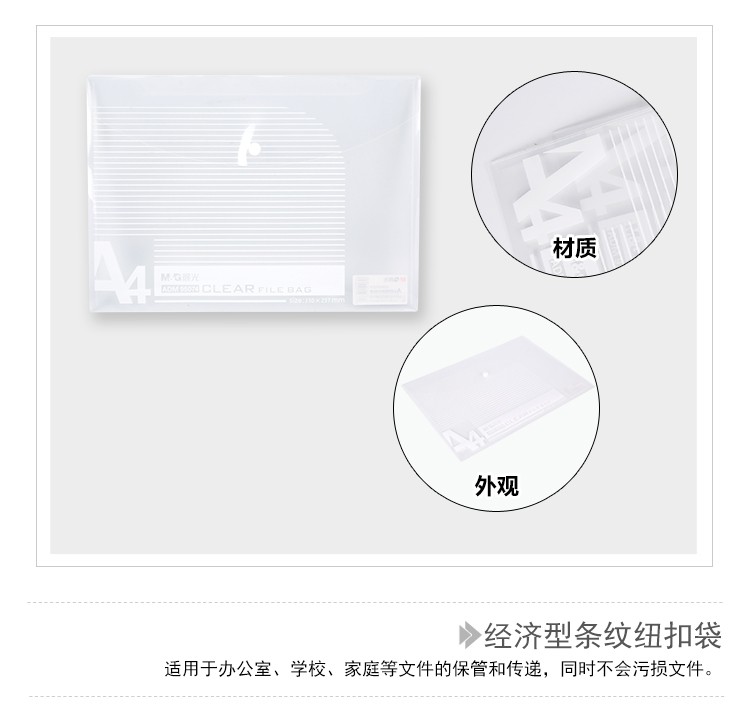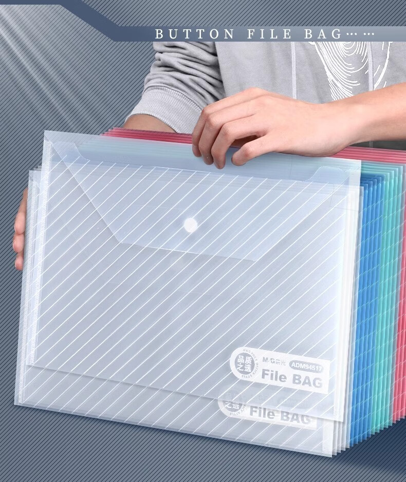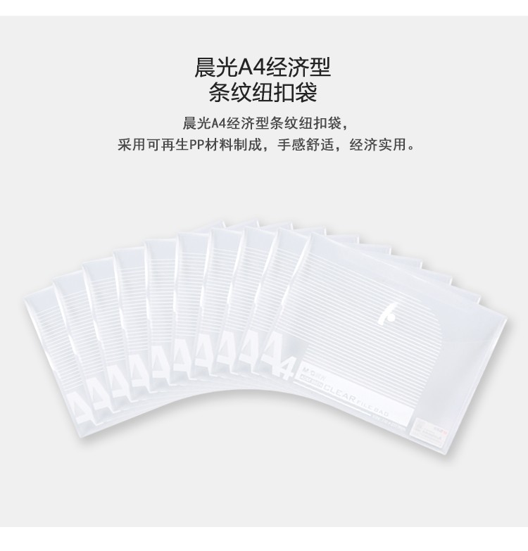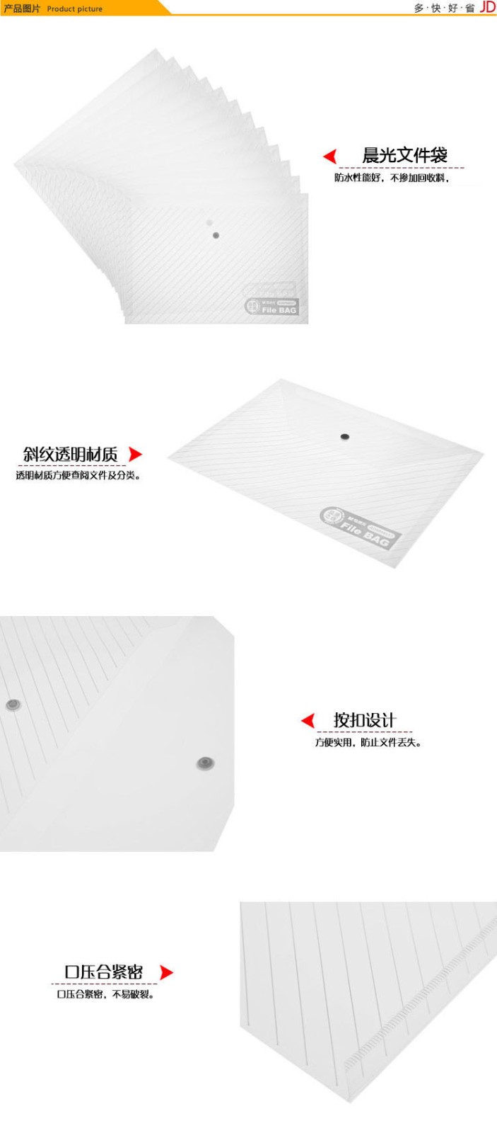 晨光文件袋透明塑料加厚大容量A4塑料防水袋按扣试卷收纳袋学生用档案资料袋文件袋文具商务办公用品 ADM94517按扣斜条白色12个 自营