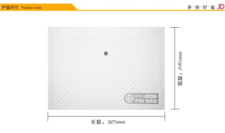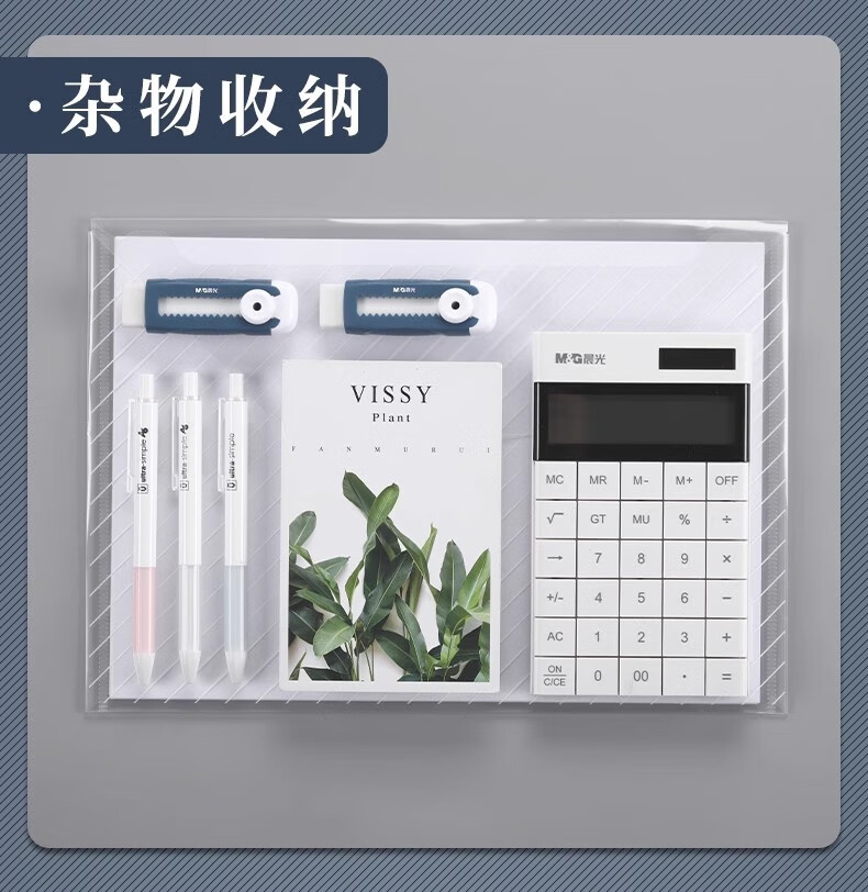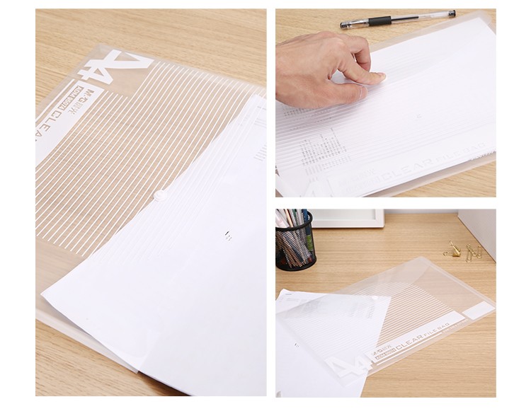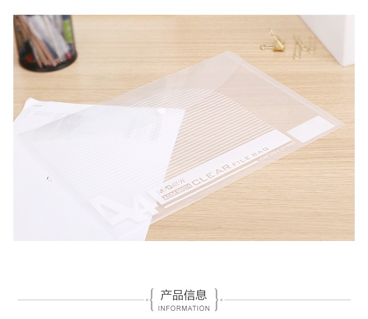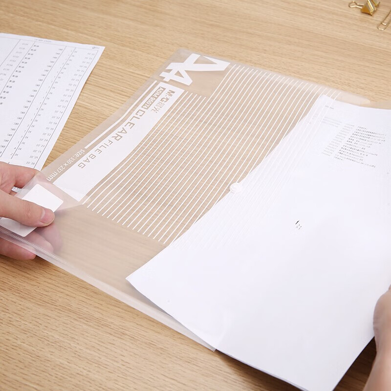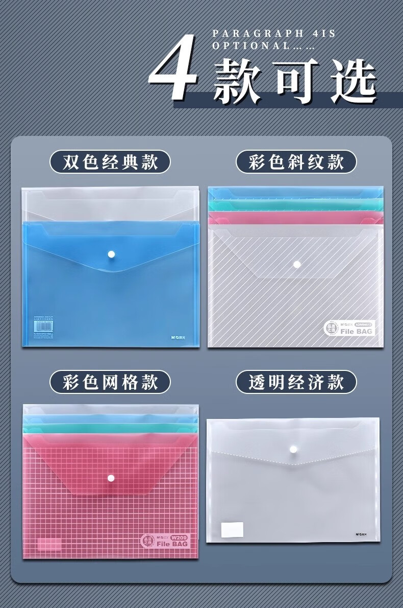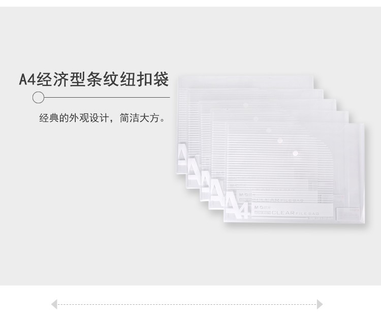 晨光文件袋透明塑料加厚大容量A4塑料防水袋按扣试卷收纳袋学生用档案资料袋文件袋文具商务办公用品 ADM94517按扣斜条白色12个 自营