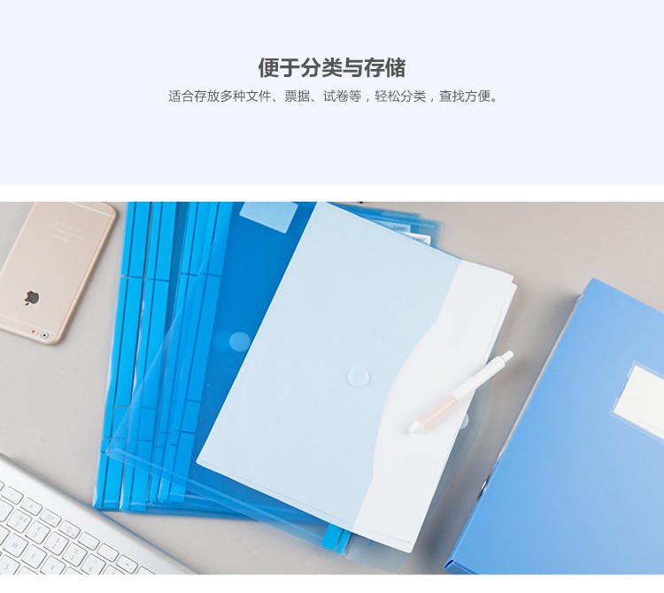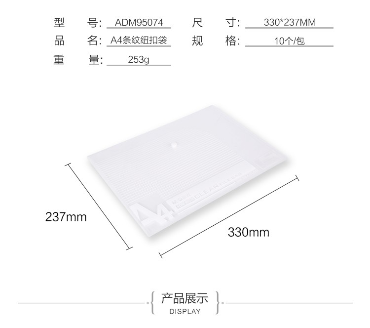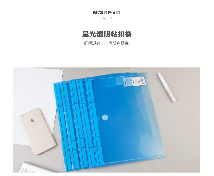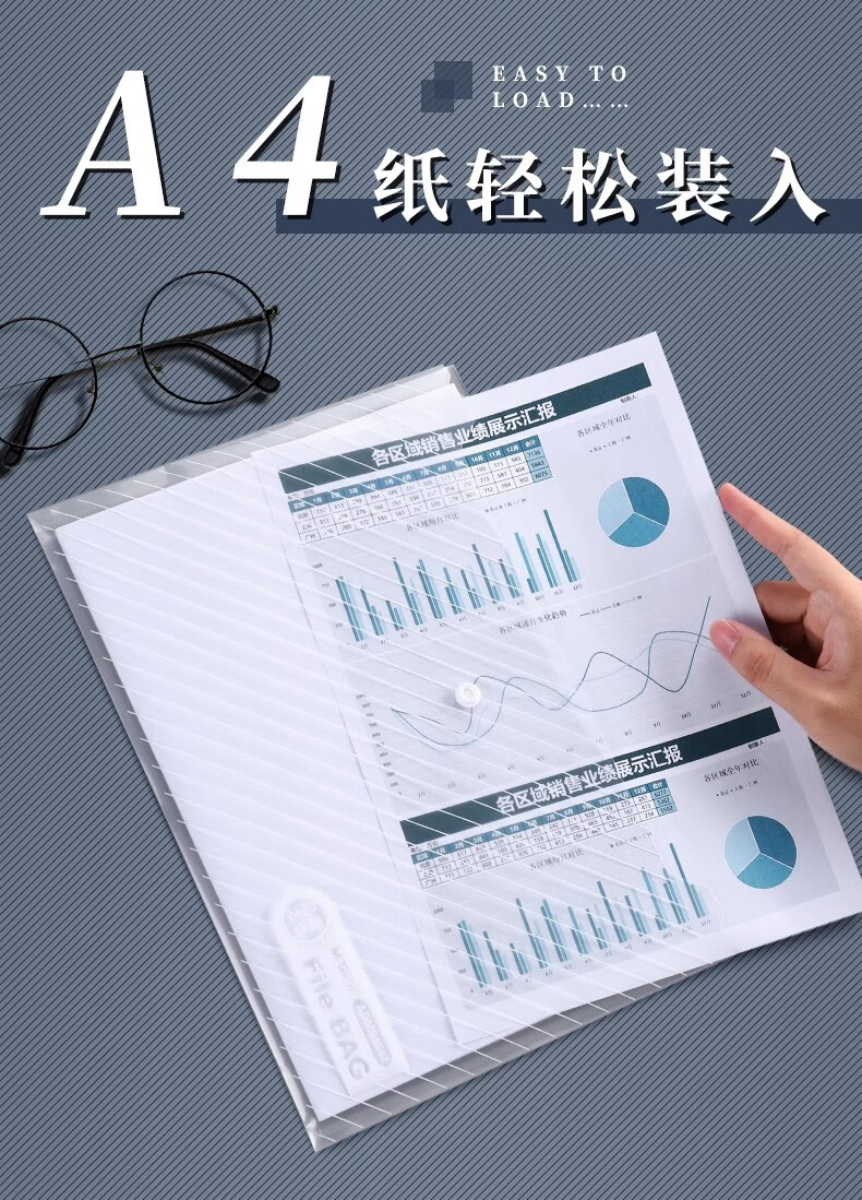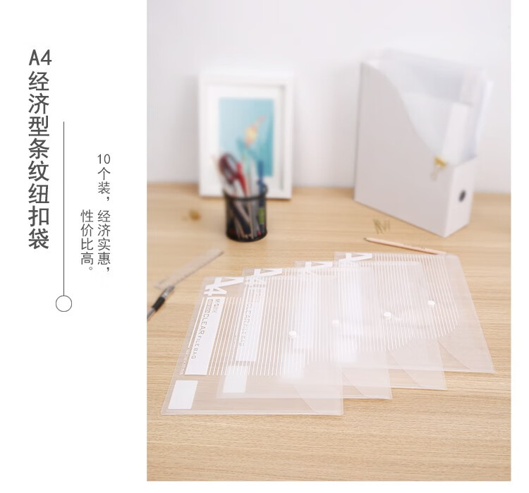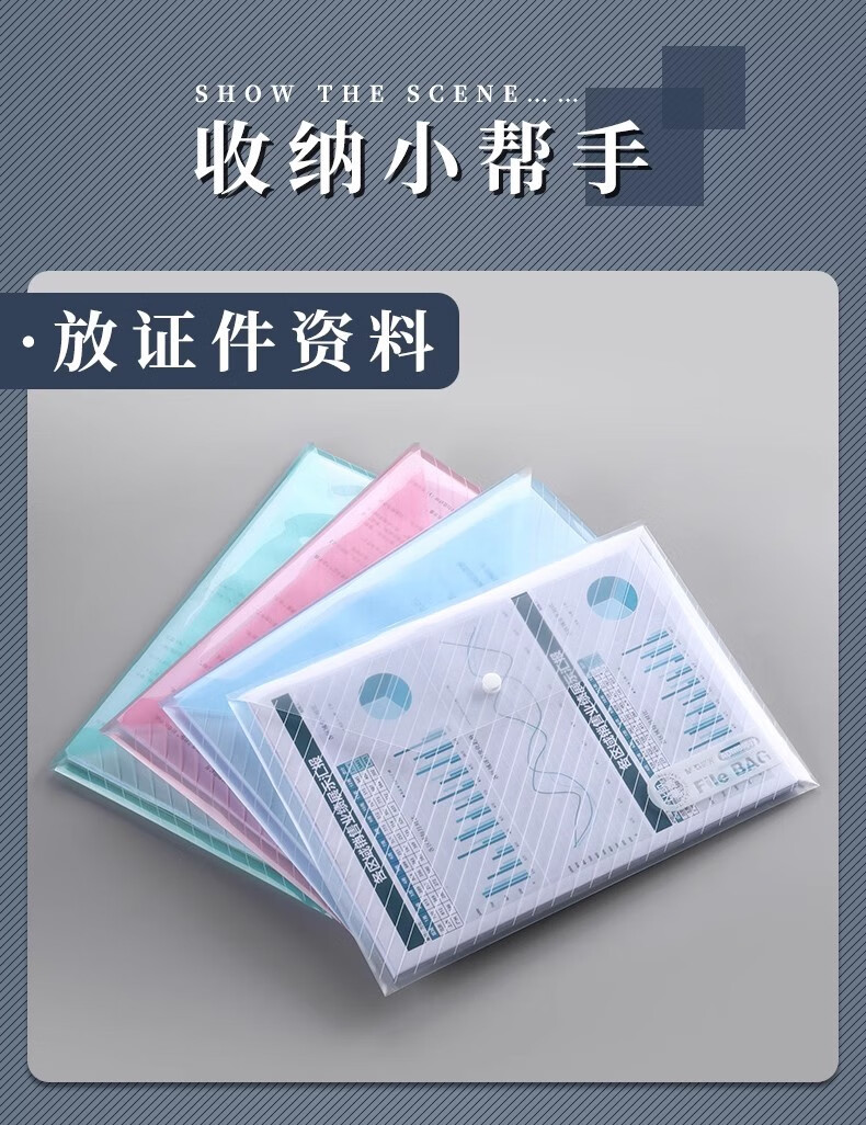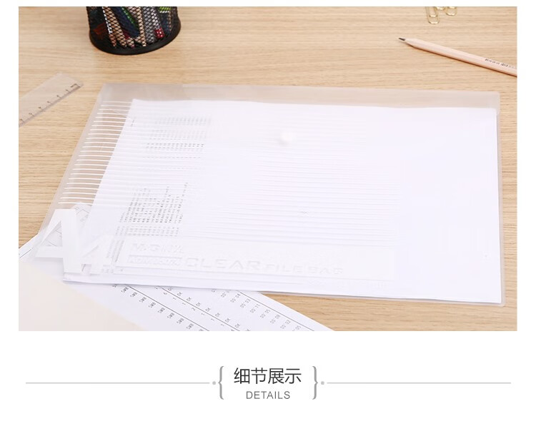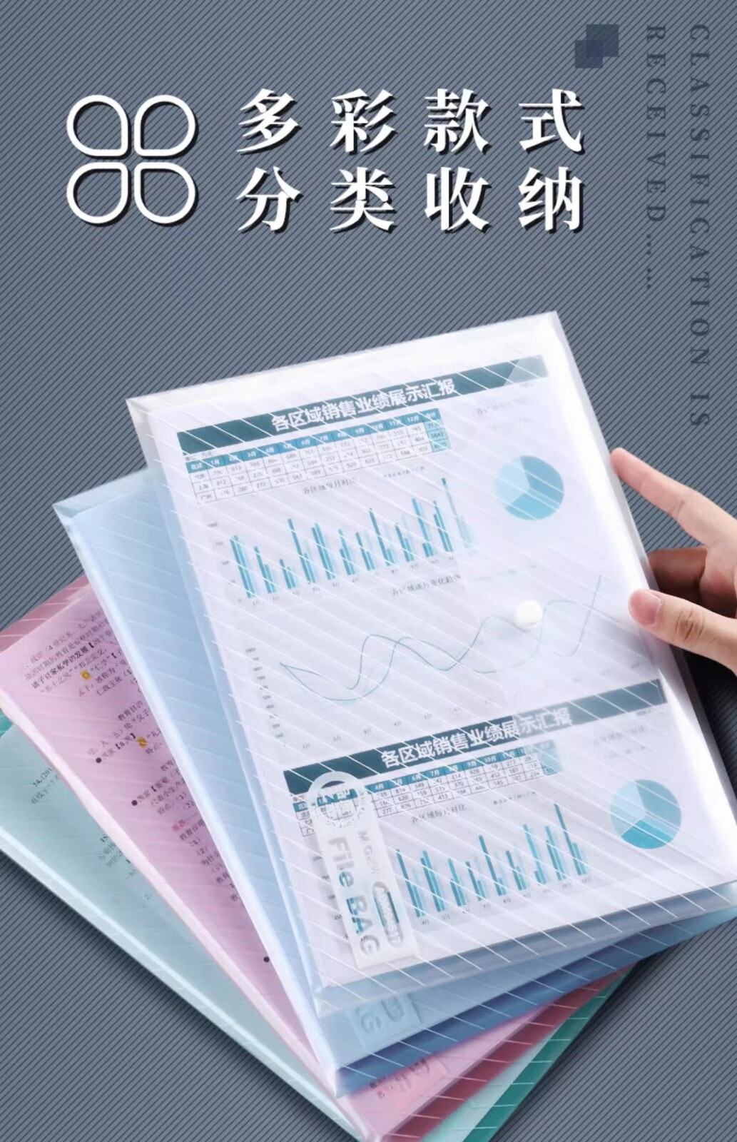 晨光文件袋透明塑料加厚大容量A4塑料防水袋按扣试卷收纳袋学生用档案资料袋文件袋文具商务办公用品 ADM94517按扣斜条白色12个 自营