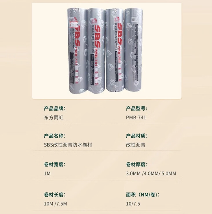 东方雨虹弹性体改性沥青防水卷材 SBS PMB-741 沥青防水卷材 1卷 10米 自营