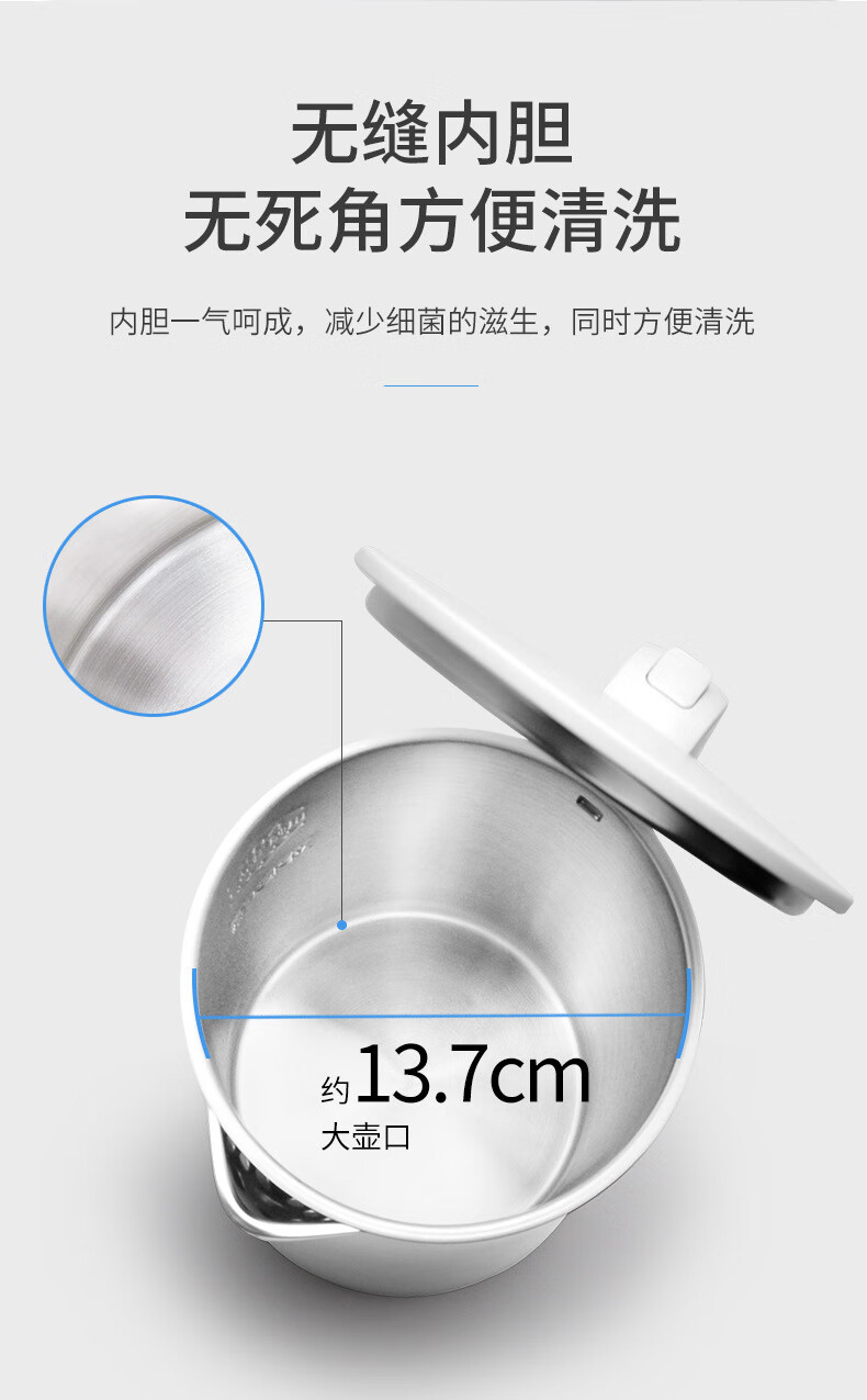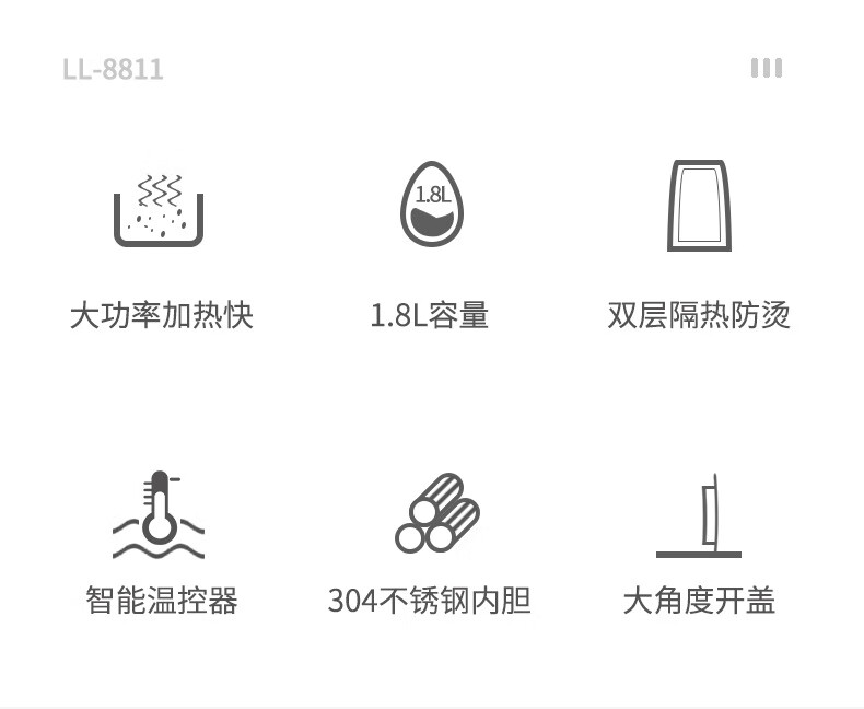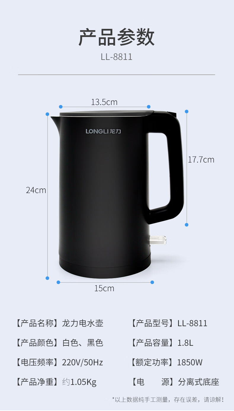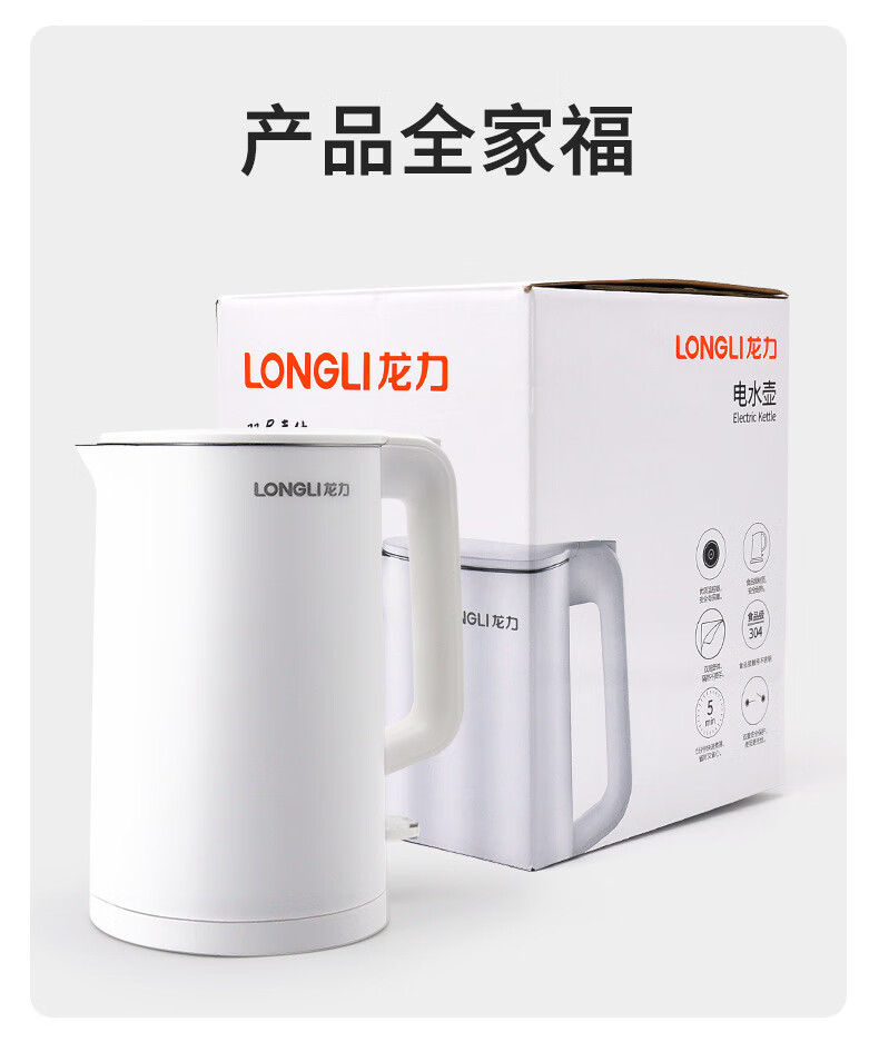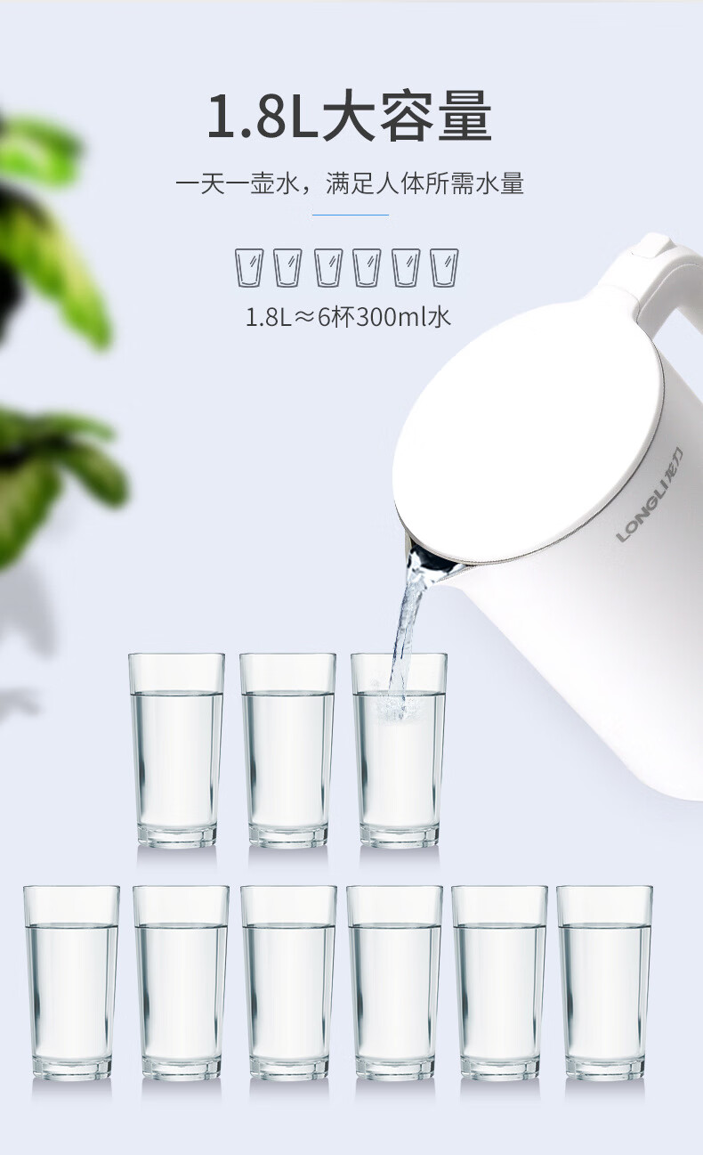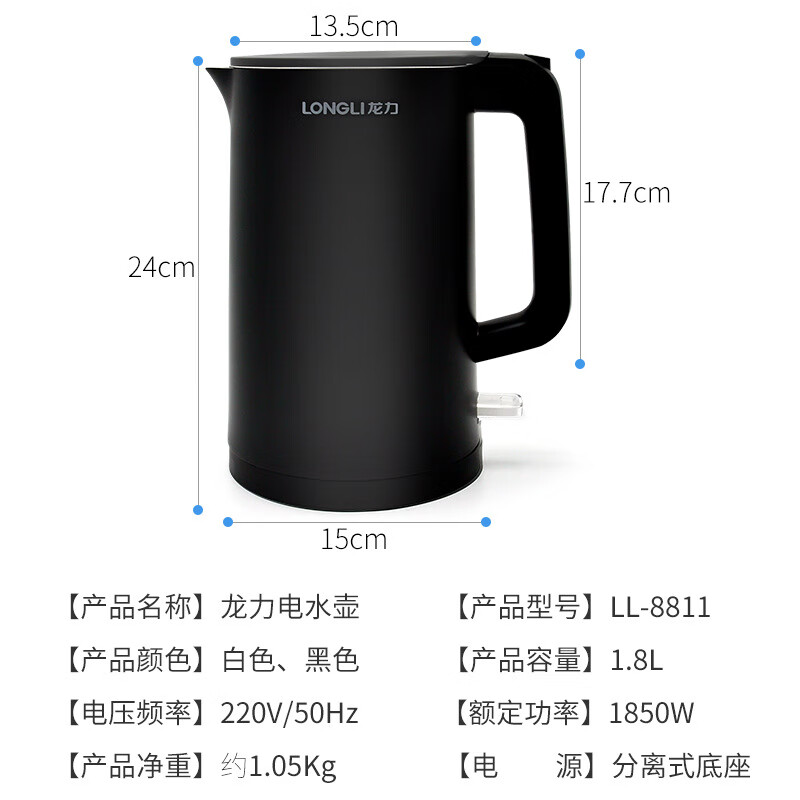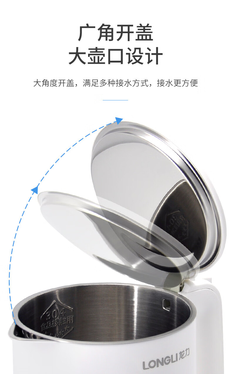 龙力LL-8811电热水壶304不锈钢烧水壶家用酒店宾馆办公室1.8L水壶 白色 自营