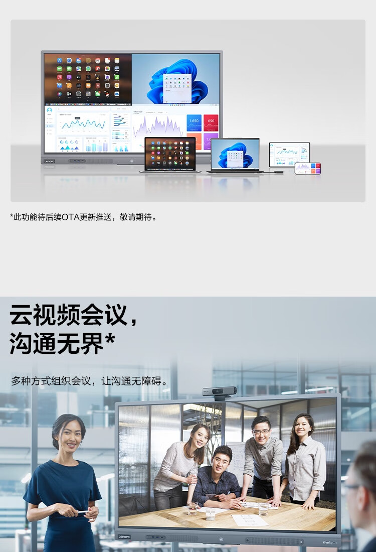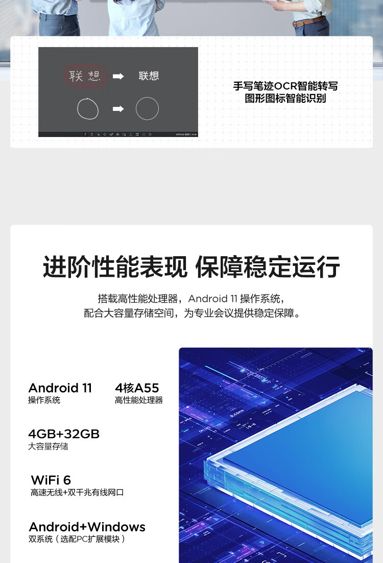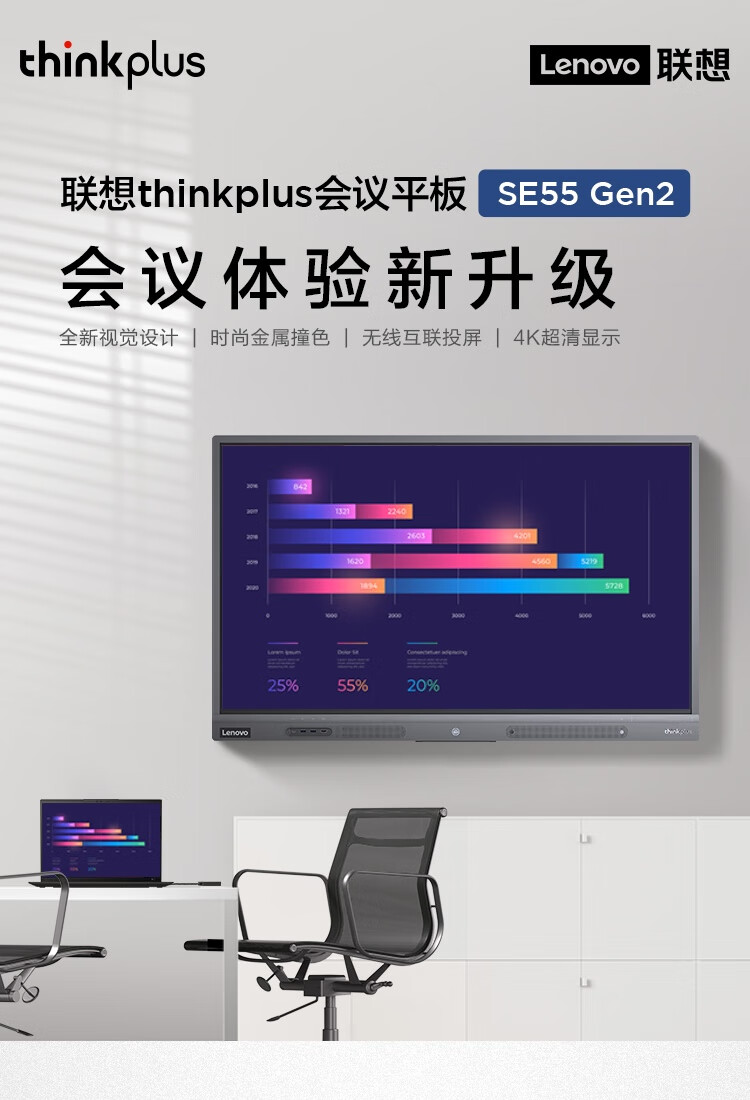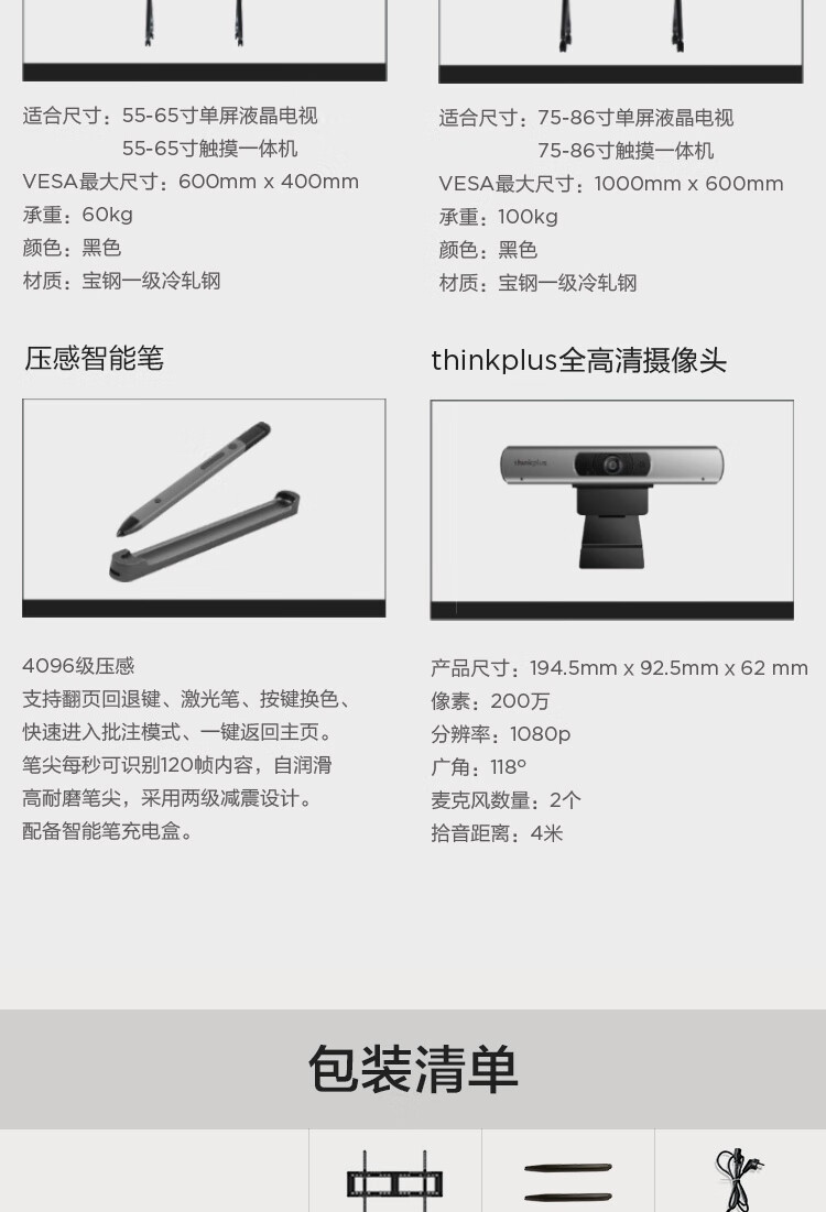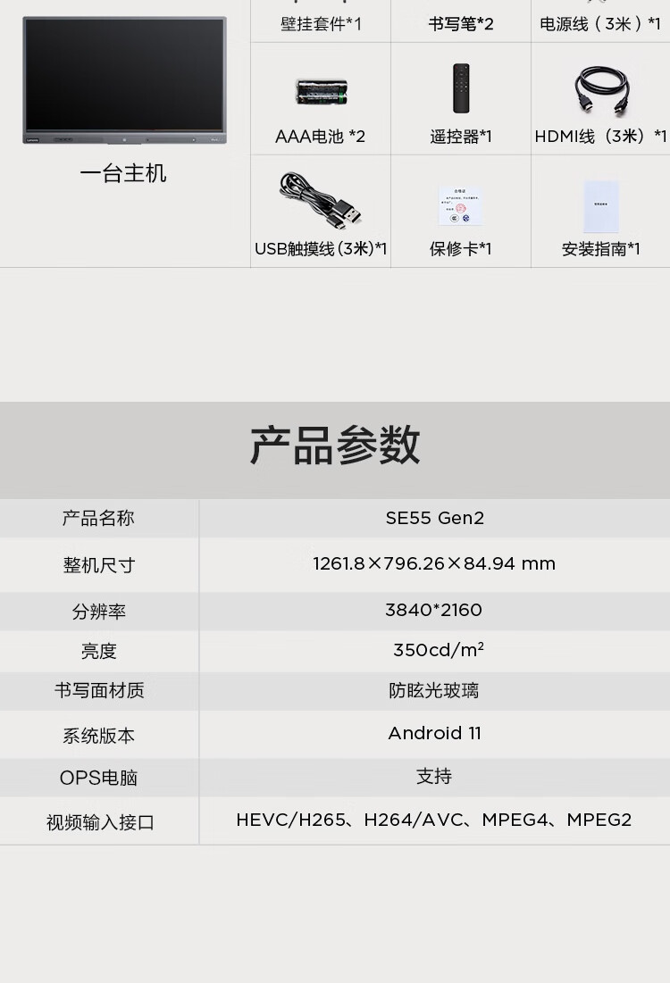 联想thinkplus 会议平板一体机55英寸 电子白板视频教学触摸屏电视 SE55 Gen2+传屏+支架+Win10双系统 自营