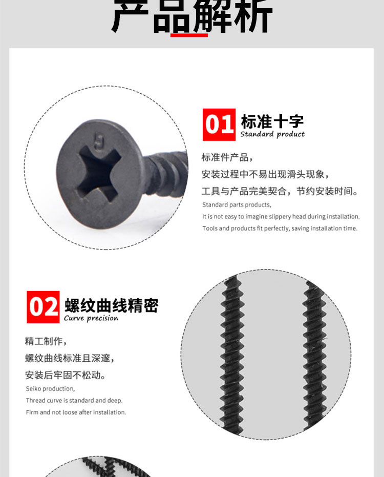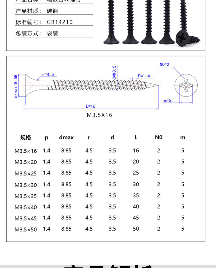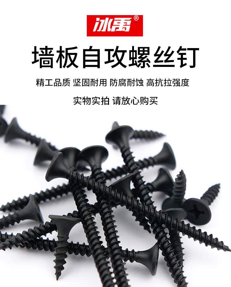 冰禹 BYJZ-3630 墙板自攻螺钉 木螺丝钉干壁钉GB14210 纤维板十字沉头自攻钉 M3.5*16 1000个 自营
