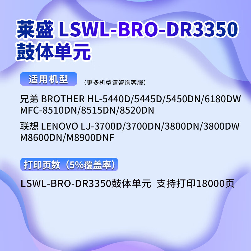 莱盛DR3350鼓架 适用兄弟HL5440D硒鼓5445D 5450DN 618ODW鼓体MFC8510DN 8515DN 8520DN联想LJ3700D鼓组件 自营